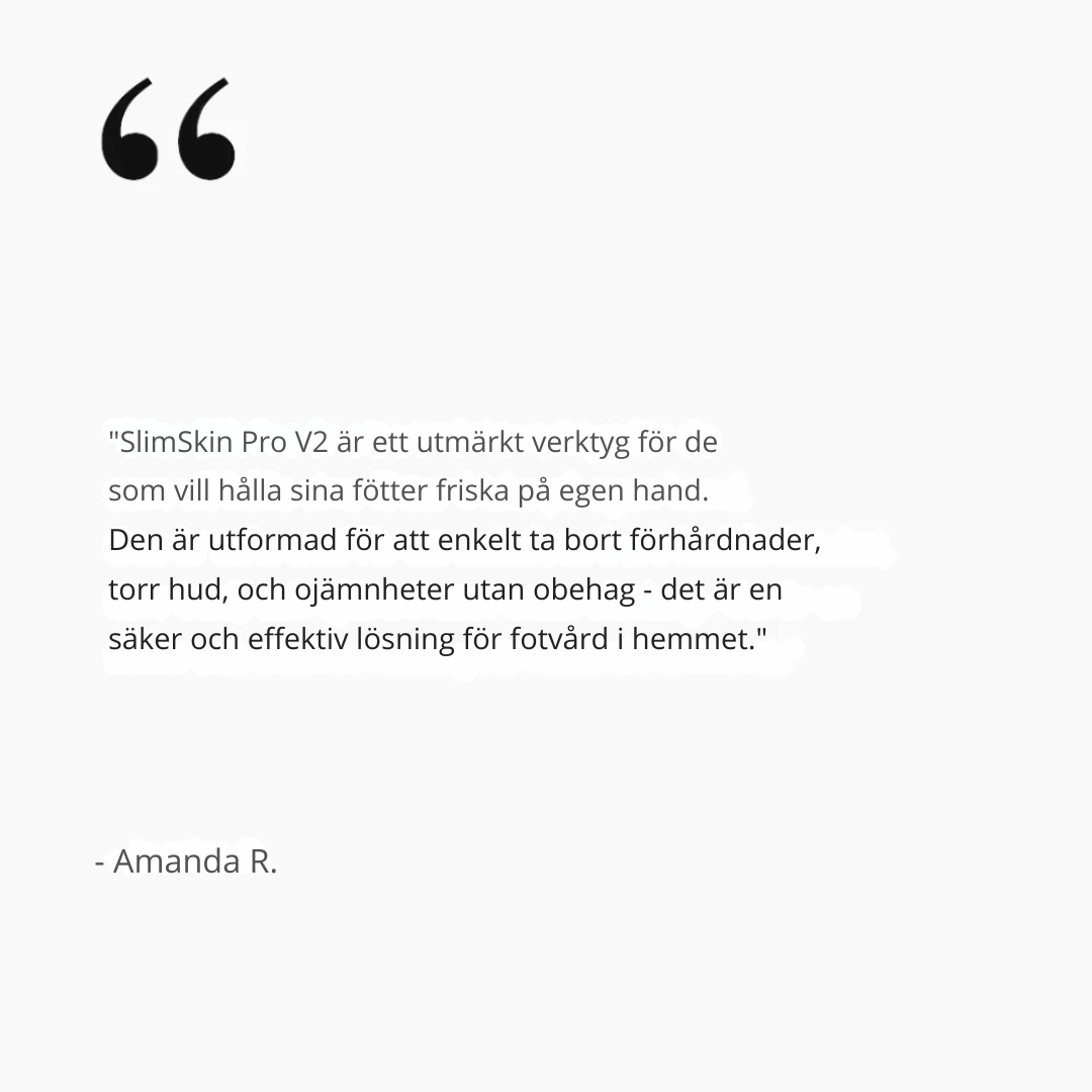 SlimSkin Pro V2 är lösningen du letat efter. En kraftfull och skonsam elektrisk fotfil som effektivt tar bort död hud och förhårdnader – för mjuka, fräscha fötter du vågar visa.